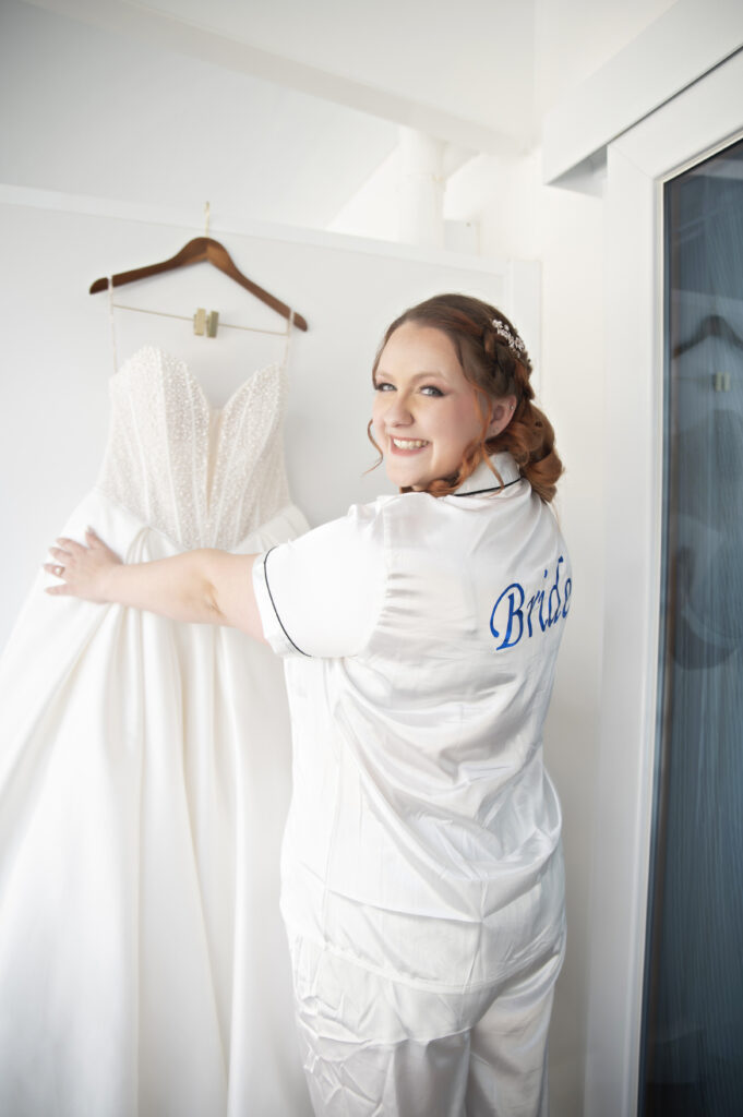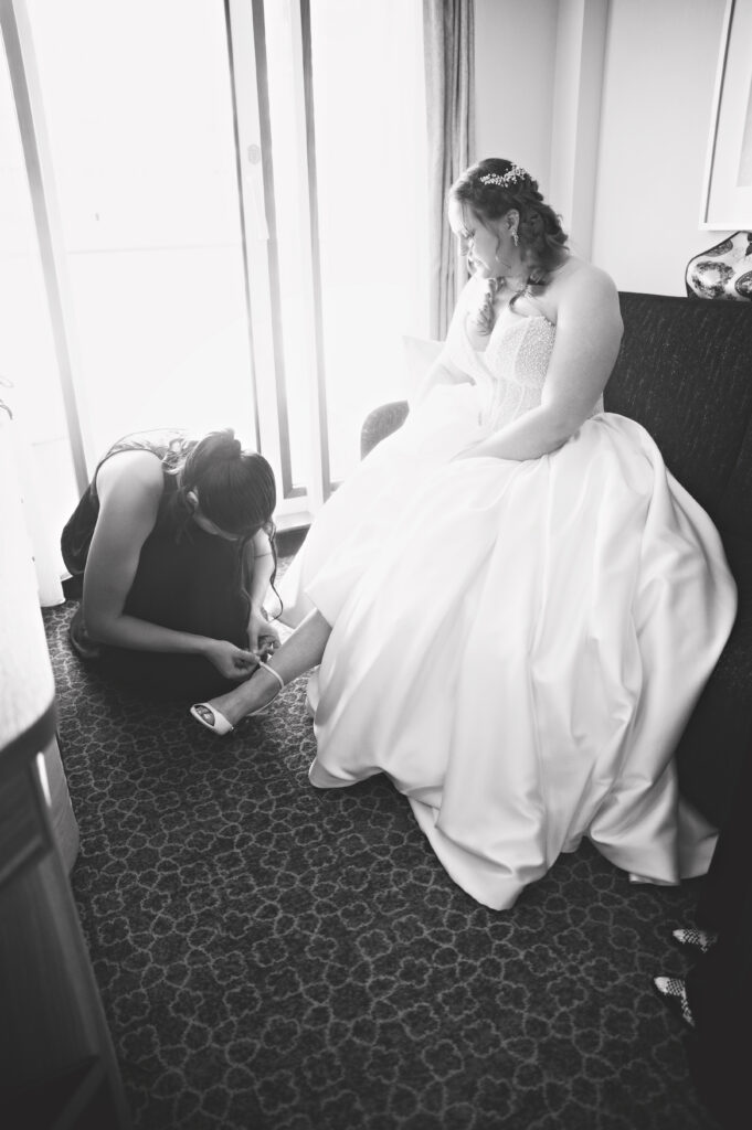 Sunlight poured through the balcony windows, reflecting off the ocean outside and creating the softest light for getting ready photos.